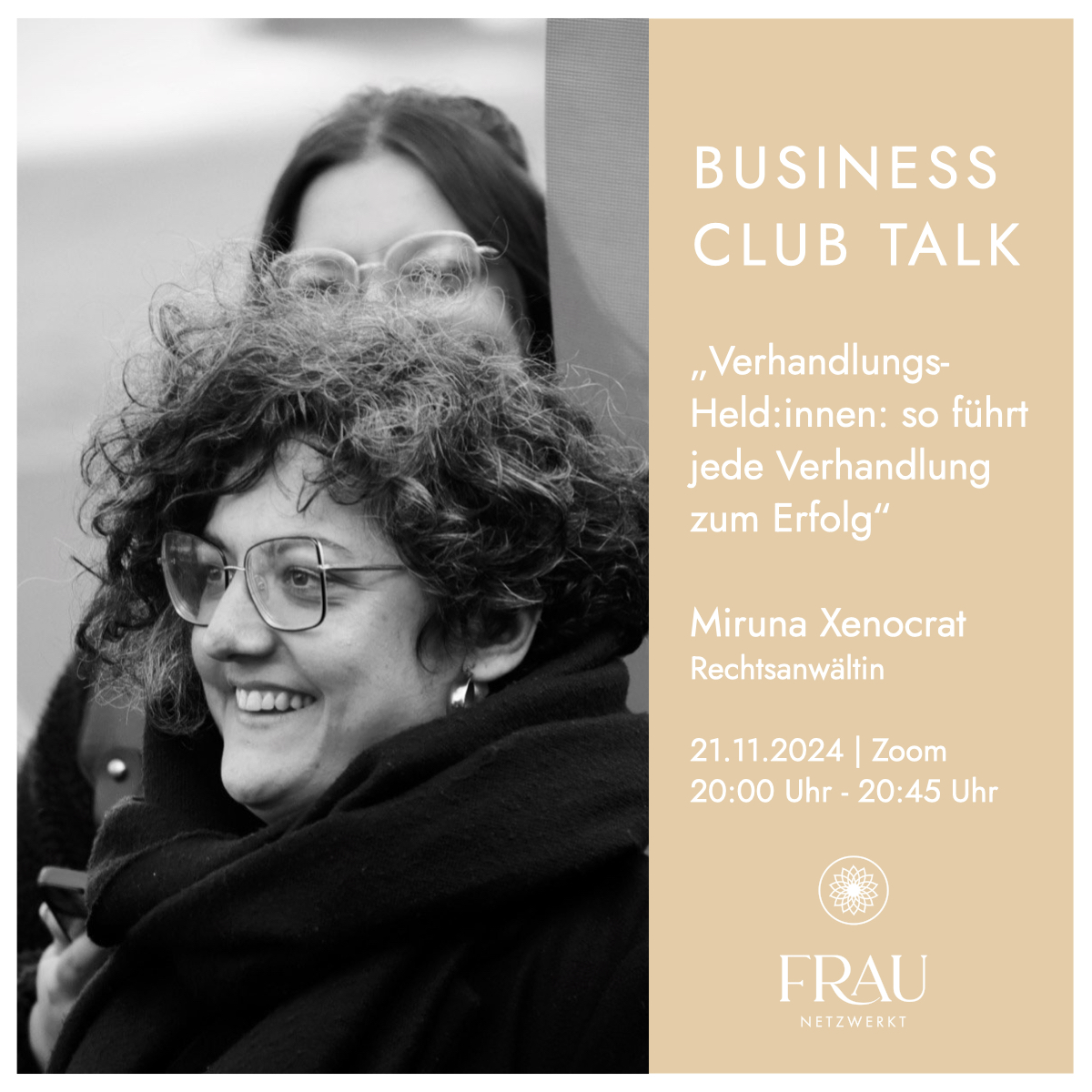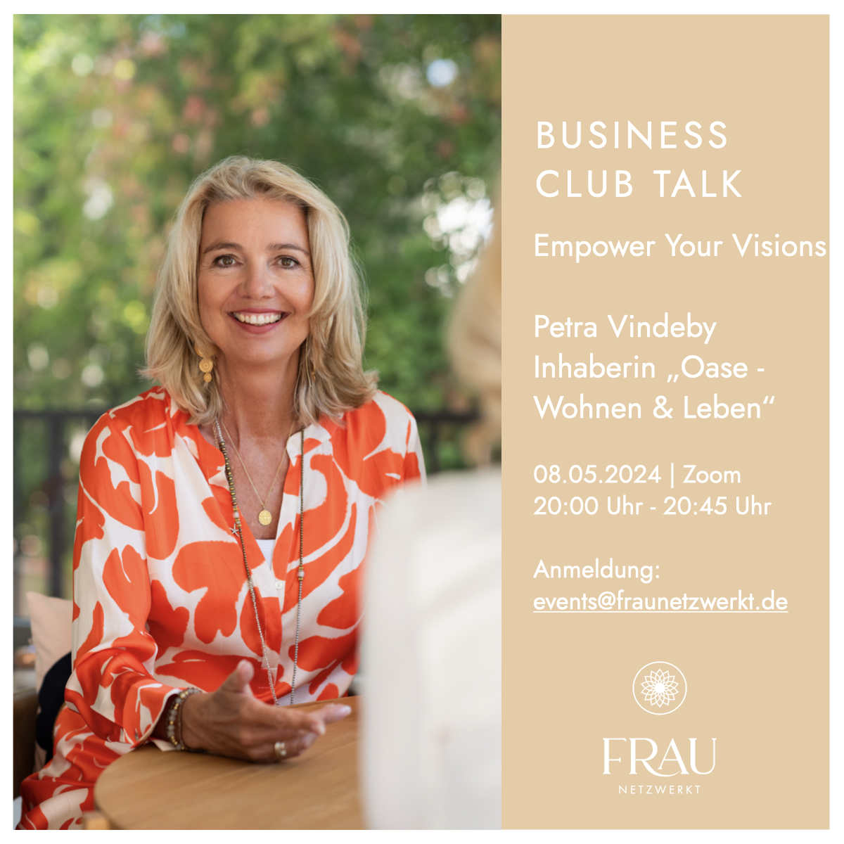 Wenn Sie Ihre Werbeeinwilligung für FRAU NETZWERKT Business Club erteilen, dann gehen wir mit Ihren personenbezogenen Daten für eigene Werbezwecke um. Ihre Einwilligungserklärung ist die Rechtsgrundlage für unseren diesbezüglichen Umgang mit Ihren personenbezogenen Daten. Sie können Ihre Einwilligung jederzeit mit Wirkung für die Zukunft widerrufen.
